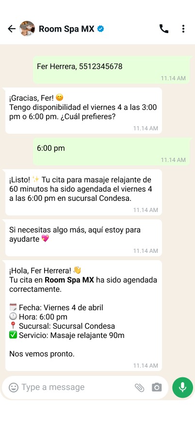 Convierte cada mensaje de WhatsApp en una cita confirmada.